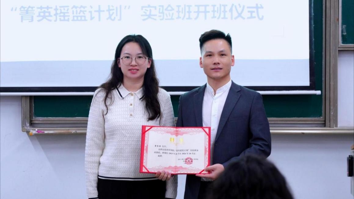经济与管理学院党总支书记胡旷为省工商联行协工委秘书长黄召超颁发实验班客座教授聘书。下一步,受聘导师将围绕行业认知、职业能力提升、创新创业等模块为学生授课,并全程指导企业调研、项目策划与实习实践。