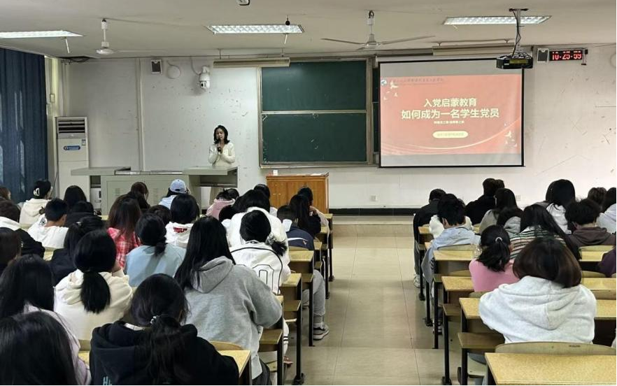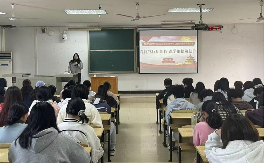 (通讯员:魏芬、王博)为帮助2025级新生筑牢思想根基,深化对党的认知、树立正确入党动机,经济与管理学院党总支面向2025级新生开展入党启蒙教育系列活动,以沉浸式、多维度的教育形式,为新生打造立体化理想信念“第一课”。 筑牢信仰之基:专题教育引领思想启航 10月22日上午,学院党总支书记胡旷以“青衿笃行启新程、深学细悟筑信仰”为题,为2025级新生讲授专题党课。她围绕党的理论体系、百年奋斗历程与新时代成就,阐释了中国共产党的光辉历程与理论创新,解读了学院“青衿笃行”党建品牌内涵,结合学院专业特色与人才培养目标,鼓励新生融汇专业,将个人理想追求融入党和国家事业发展之中,在实践中担当时代使命。