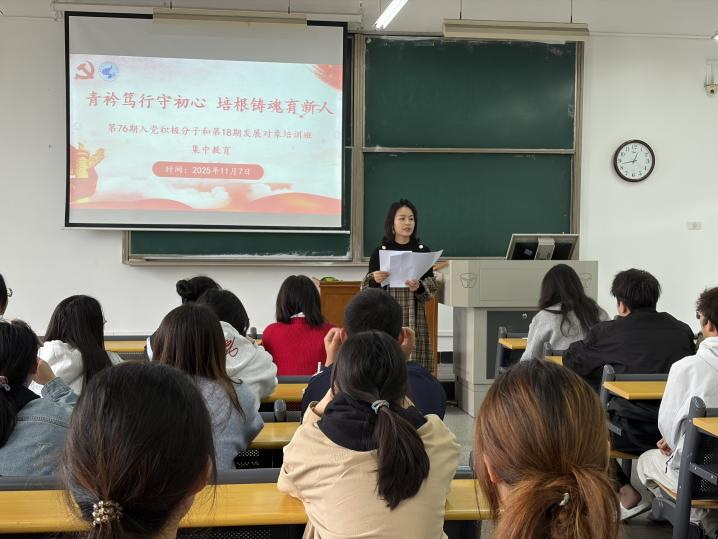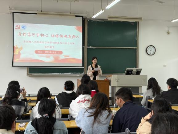 党总支书记胡旷以“以合格的政治姿态和严明的纪律作风”为切入点,为学员们讲授开班微党课。胡书记强调,参训学员必须绷紧“纪律规矩”这根弦,深植“党性修养”这颗种子,不断筑牢成长进步的根基。她结合典型案例,警示学员们端正入党动机,遵守党纪党规,坚定理想信念,真正做到学有所思、学有所悟、学有所行,自觉将个人理想融入党和人民的伟大事业之中。