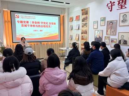 经济与管理学院党总支书记胡旷以《学条例 守党纪 自觉做忠诚干净担当的合格党员》为题讲授专题党课。她带领全体党员进一步学习了《中国共产党纪律处分条例》,系统阐述了党的纪律规矩的深刻内涵与时代要求,引导党员们准确掌握“六项纪律”的主旨要义,强调要将党纪学习融入日常、抓在经常,切实增强政治定力、纪律定力、道德定力、抵腐定力,真正把遵规守纪内化为言行自觉。