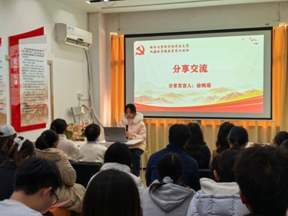 第五党支部学生党员徐婉茹结合自身学习体会进行主题发言,分享了全会精神对青年党员在廉洁自律、履职尽责方面的指导意义,让与会人员对全会精神有了更深刻的理解。