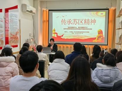 “红领经” 学生党员理论宣讲团成员李晨瑜则带来 “苏区精神” 宣讲,通过讲述苏区时期的廉洁故事,让大家在红色精神洗礼中汲取廉洁力量。