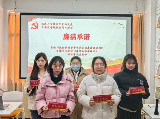 本次主题党日活动是经济与管理学院培育廉政文化品牌“青衿润廉”的生动实践。通过“党课导学、理论研学、宣讲促学、影教警学、实践践学”五维模式,学院将党风廉政建设的要求转化为青年可感知、可参与、可践行的成长教育,实现了党性锤炼、纪律教育与廉洁文化建设的有机融合,有力强化了学生党员的纪律意识与规矩意识,为其未来人生征程注入了坚定的清廉底色。经济与管理学院党总支将持续加强党风廉政建设,推动廉洁文化建设走深走实,为学院高质量发展提供坚强的纪律保障。