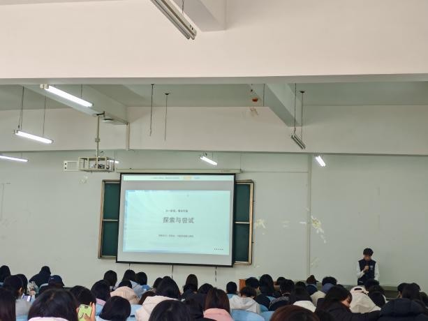 见面会现场氛围热烈融洽,学生干部代表依次登台分享,用真挚话语传递经验,用实际经历指引方向。在志愿服务与社会实践领域,赵梦洁以亲身经历,生动讲述了日常志愿服务以及“三下乡”的深刻体会,她用脚步丈量乡土,用热情服务群众,用实践锤炼真知,点燃了新生们投身社会、奉献青春的火种。谈及党团引领与个人追求,李冰艳系统梳理了入团推优与入党流程,她强调要端正动机、砥砺品行、争做表率,为有志于此的同学指明了清晰路径。面对学术创新与学科竞赛,庄伊红无私分享了备赛秘诀与心路历程,她鼓励大家勇于尝试、团队协作、精益求精,将竞赛视为锤炼思维与能力的宝贵熔炉。而在如何充盈大学生活方面,冯楚锟则以幽默平实的语言,建议大家合理规划时间、广泛探索兴趣、真诚对待同窗,描绘了一幅多维成长、平衡发展的精彩画卷。四位学生干部代表的分享各有侧重、干货满满,既有具体方法的指引,又有精神力量的传递,让新生收获颇丰、备受启发,现场不时响起阵阵掌声。