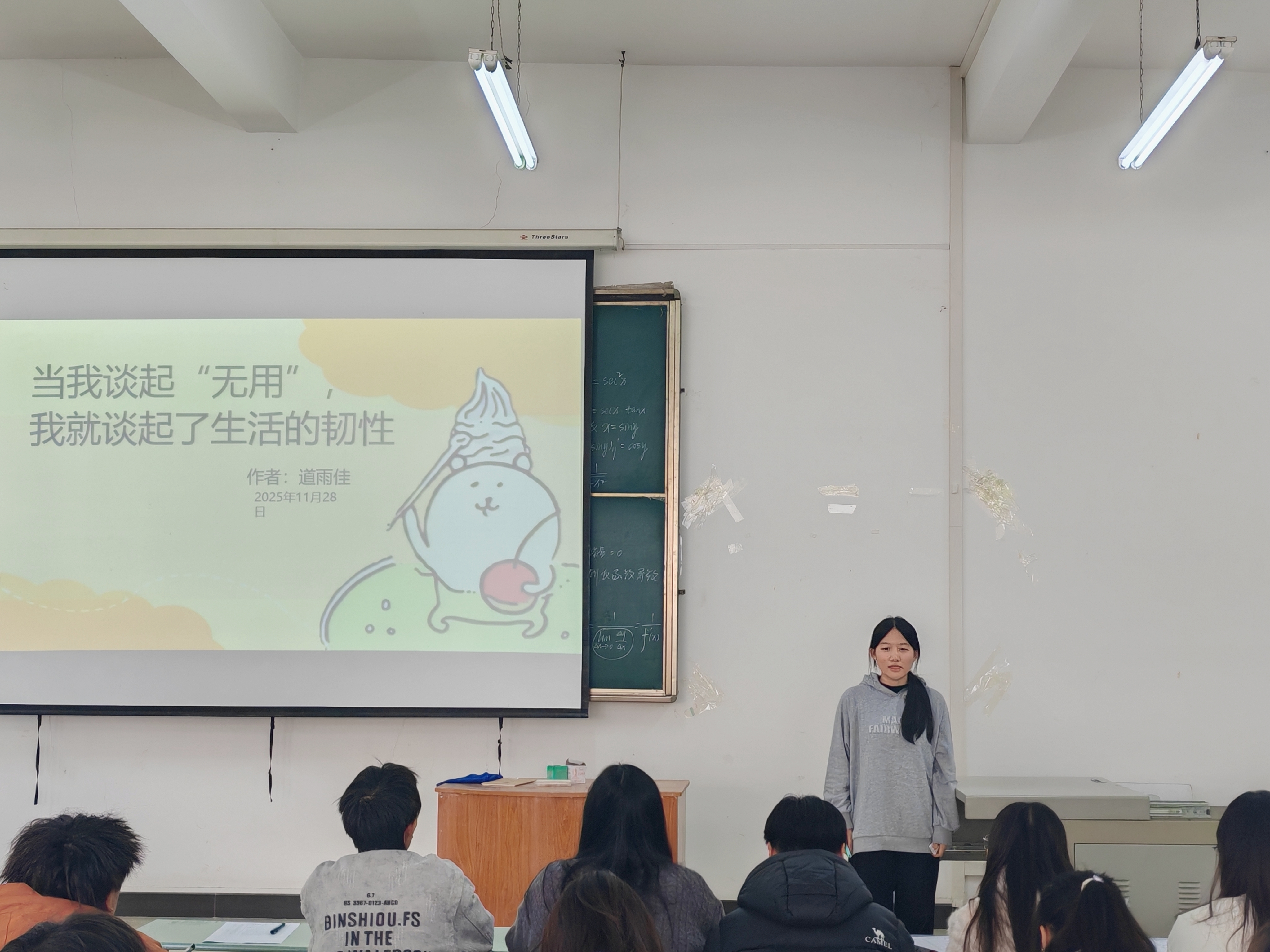 赛场之上,参赛选手紧扣“ ‘无用之用’ ”核心主题,以亲身经历为蓝本、以真挚情感为纽带,分享成长路上的心理感悟。有选手讲述坚持随笔记录、静心阅读等看似“无用”的日常,实则在时光沉淀中丰盈内心、涵养定力;有选手畅谈参与校园志愿、邻里帮扶等不计得失的付出,在默默奉献中收获温暖与价值认同;亦有选手以身边事例为引,剖析那些不逐功利的积累,终将化为人生前行的底气,真挚的表达、鲜活的故事引发在场